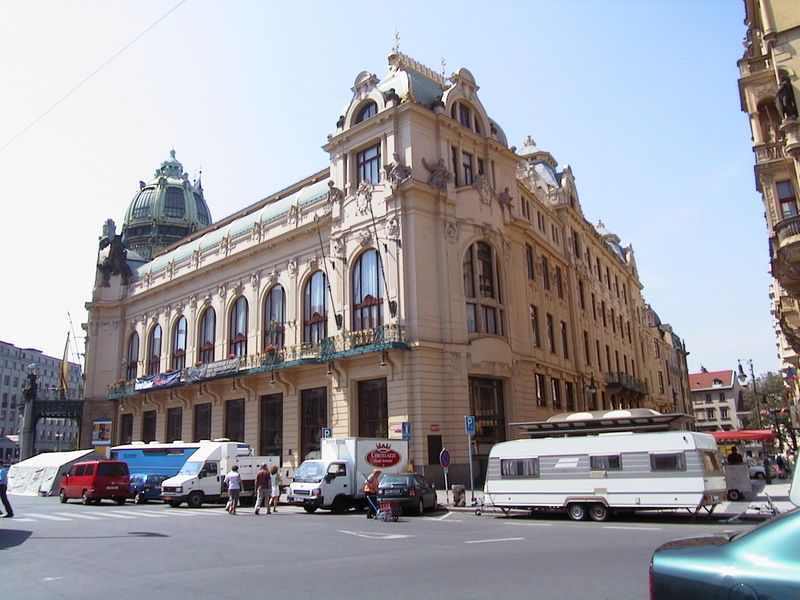 Především posledně zmiňovaný architekt Osvald Polívka (1859-1931) se zasloužil o dvě výrazně secesní stavby v Praze. Jsou to dvě sousedící budovy naproti nové budovy Národního divadla a to dům bývalé pojišťovny Praha a dům Topičova nakladatelství.