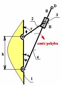 Pokud se člen (2) mechanismu pohybuje pohybem rotačním rovnoměrným (w21=konst), člen (4) vykonává pohyb: