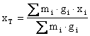 kde mi je hmotnost i-tého dílčího tělesa, xi, yi, zi jsou souřadnice středu hmotnosti i-tého dílčího tělesa.
